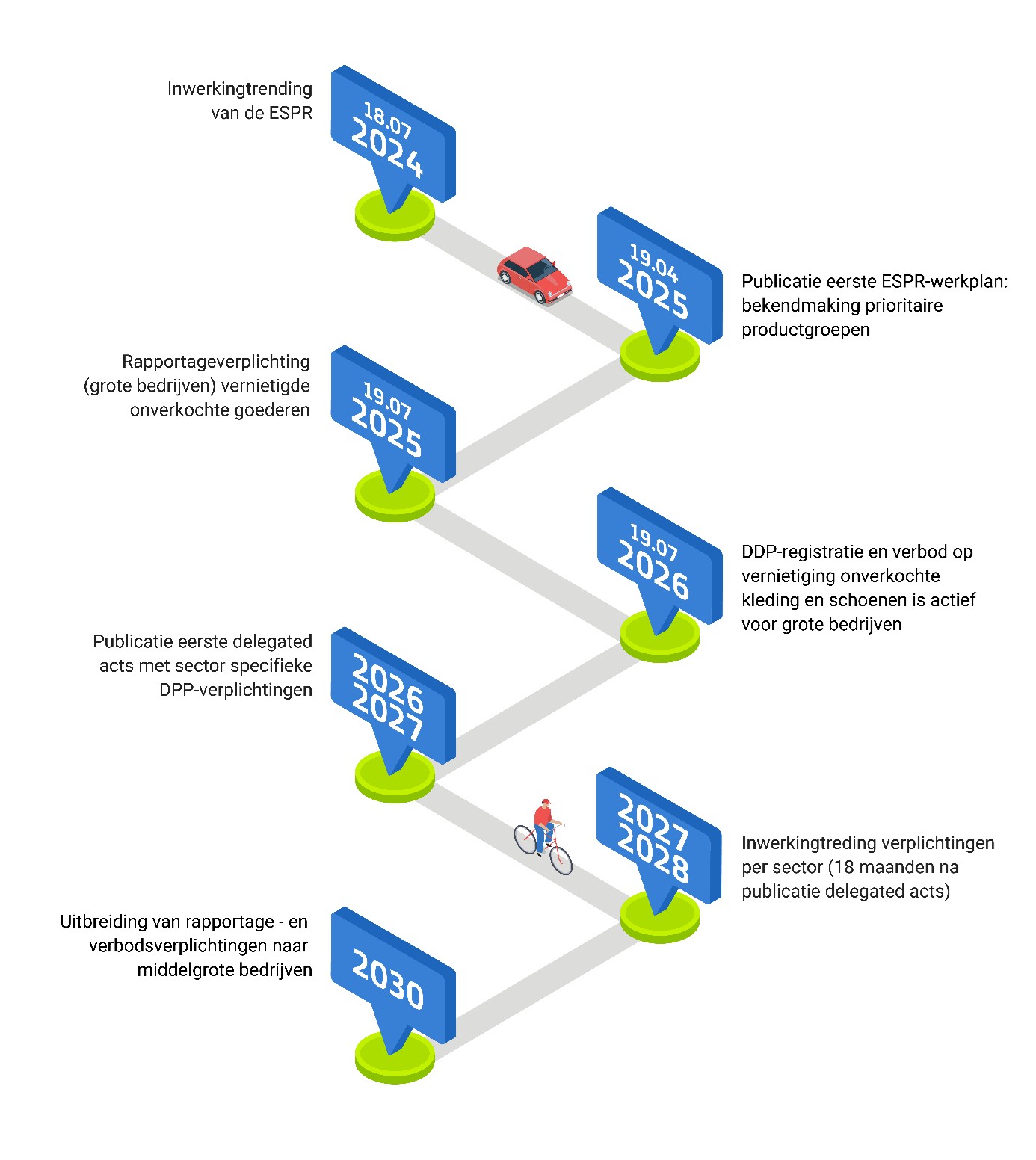 De Europese Unie heeft aangekondigd dat het DPP vanaf 2027 verplicht wordt voor bepaalde productcategorieën. De eerste vijf prioritaire groepen zijn: